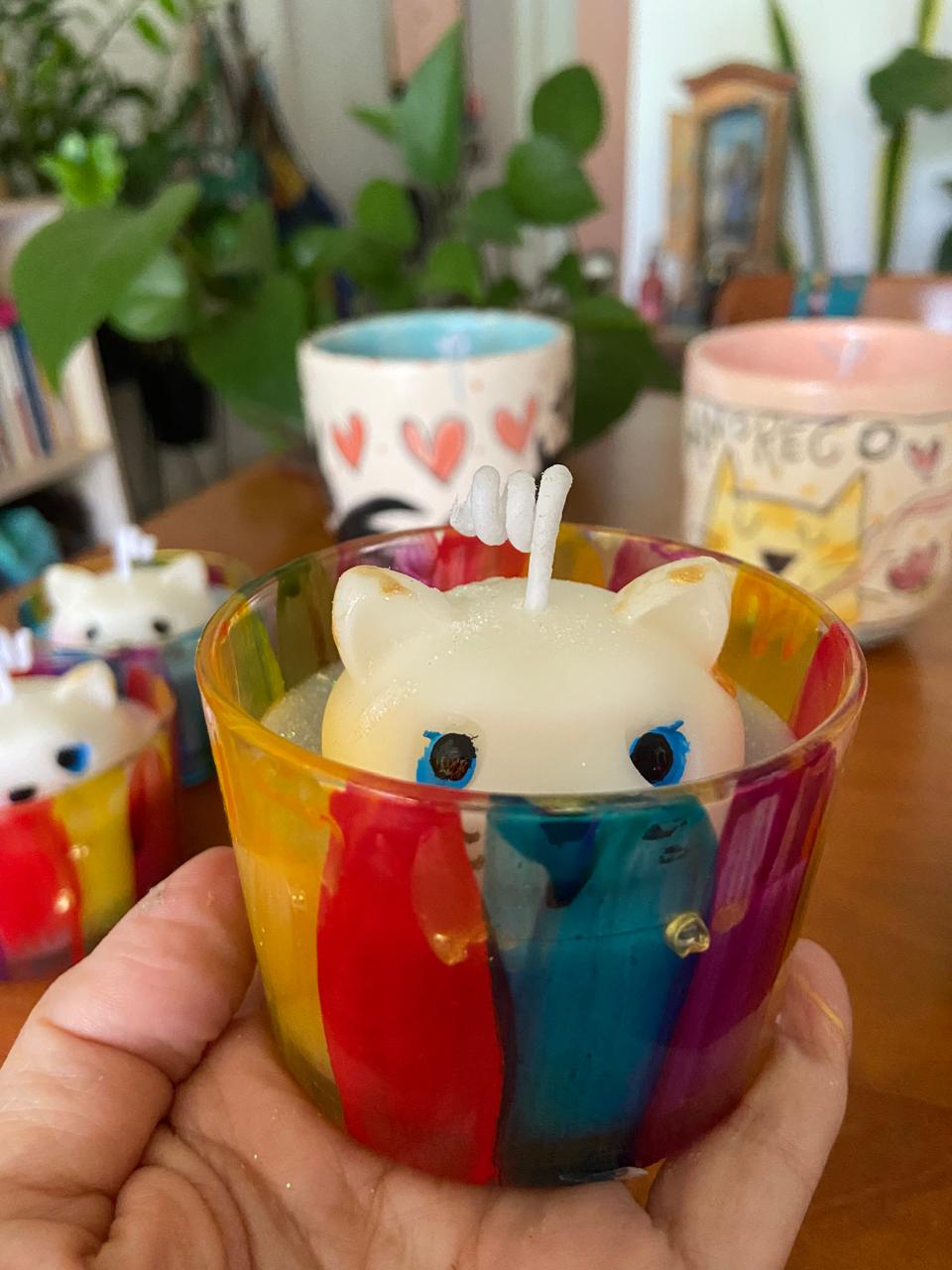 Vela feita e pintada à mão, levemente perfumada.