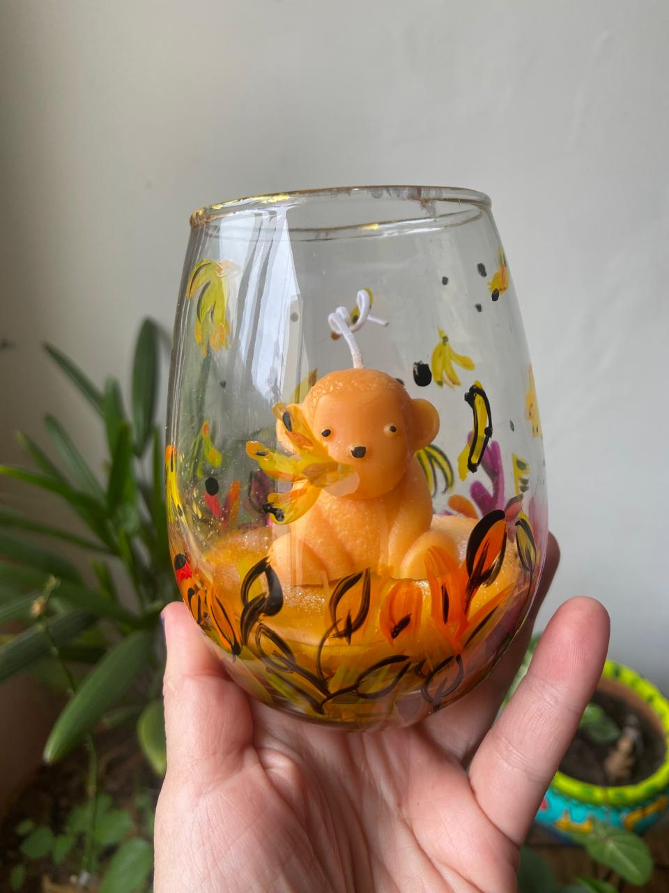 Vela feita e pintada à mão, levemente perfumada.