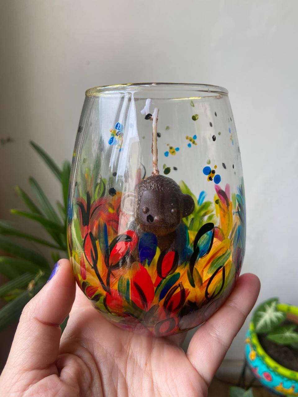 Vela feita e pintada à mão, levemente perfumada.